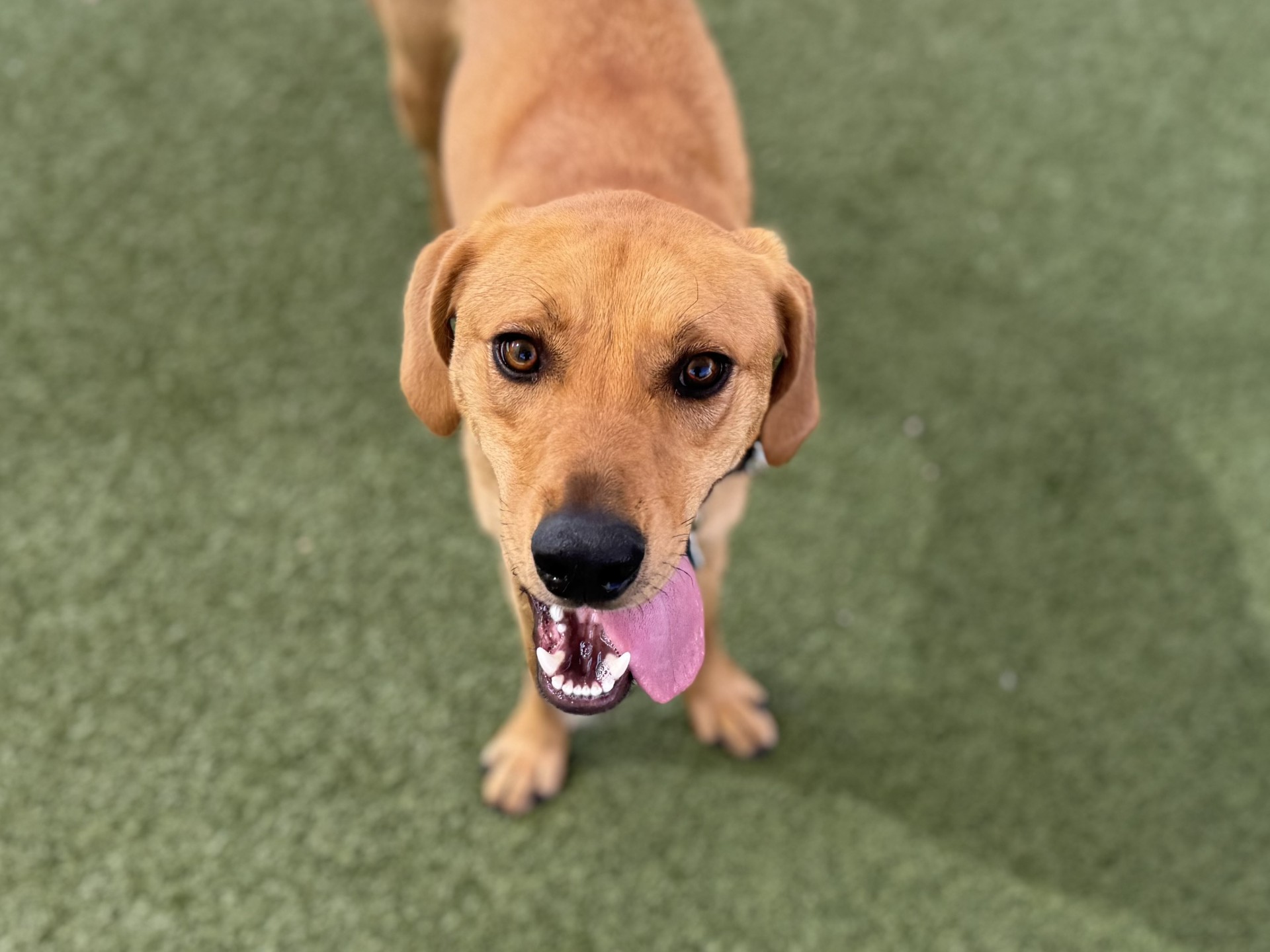 Garbanzo would do best in a home with middle school-aged children or older. He is very energetic and can be “full throttle” when meeting other dogs, meaning he comes in excited and ready to engage, so any resident dogs would need to meet him first to ensure a good fit.