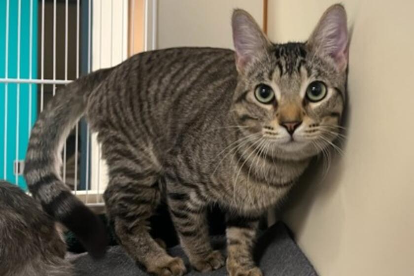 I'm an adolescent kitten which means I need lots of toys, play time and chances to hone my hunting skills. I think having another confident kitty friend that has similar energy would be great. Not much is known about my past but I'm eager to find my fur-ever home. I would love a family that will be patient with me while I settle in at my own pace. I think that if you want a handsome kitty that's just looking for some companionship, you've found your match!